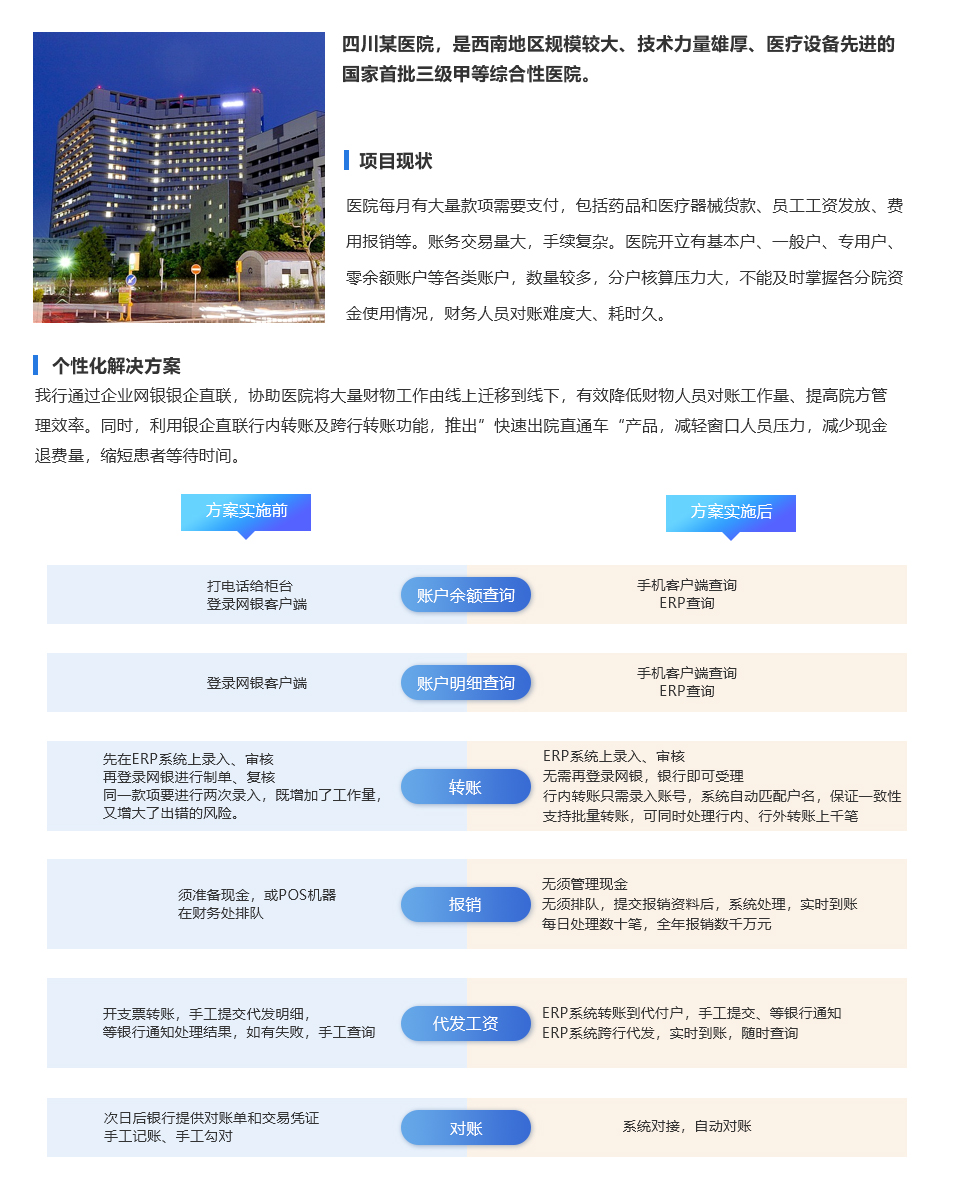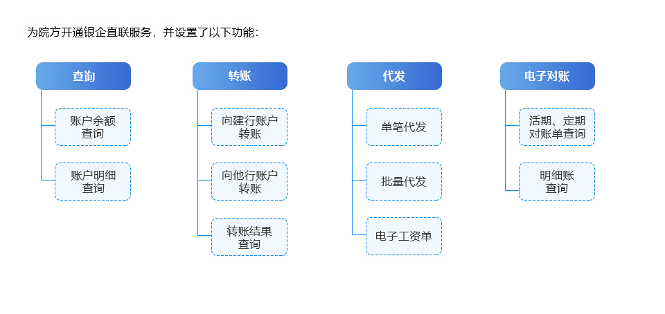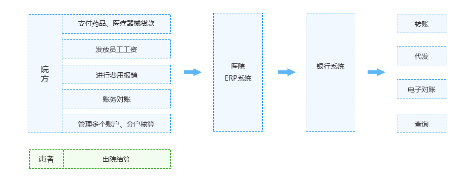针对医疗行业院方及患者提供一体化解决方案,有效进行账务处理,方便患者出院结算。