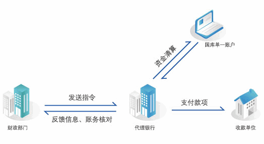 2.财政部门资金支付:代理银行接收到财政部门支付申请后为财政部门办理对外支付。