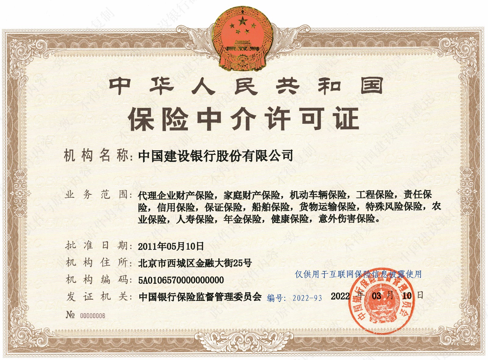保险中介许可证