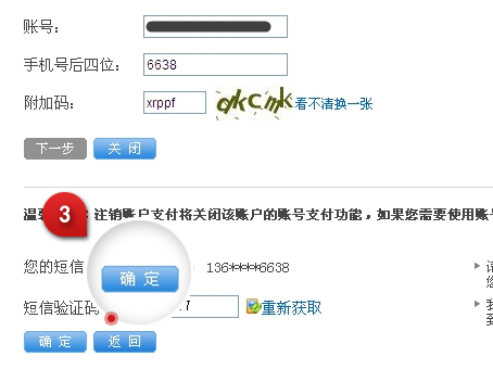 3.填写手机收到的短信验证码后,点击“确定”。