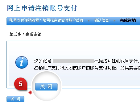 5.注销成功。如需使用账号支付,可重新开通。