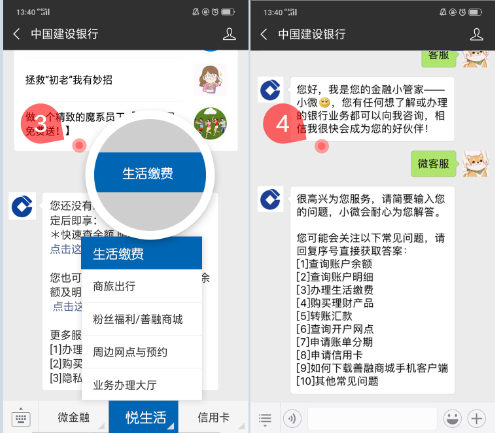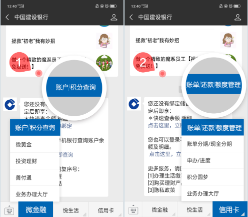 2.点击“账单查询/还款”或输入“账单”,快捷查询信用卡账单信息