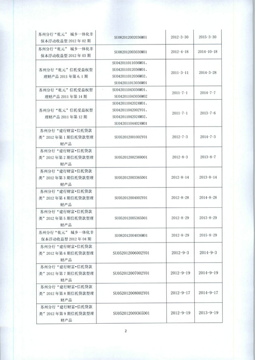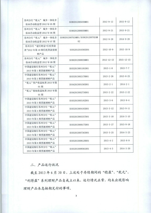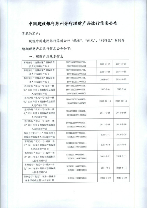 中国建设银行苏州分行理财产品信息